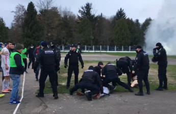 Матч рівненського «Вересу» проти ФК «Волинь» завершився сутичкою фанатів та поліції. Поліція побила волинських фанів, які вибігли на поле.