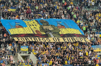 Фортеця Європи: українські фанати підняли банер із Луцьким Замком під час матчу з Францією