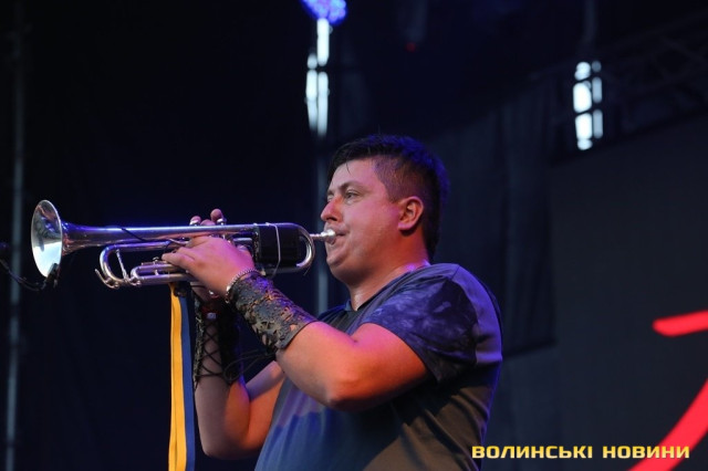 Ти помилився - смерть твоя близько», - йдеться у пісні.До слова, окрім чудового вокалу, лідер музичної формації дивував бандерштатівців грою на сопілці та на незвичному музичному інструменті – косі.