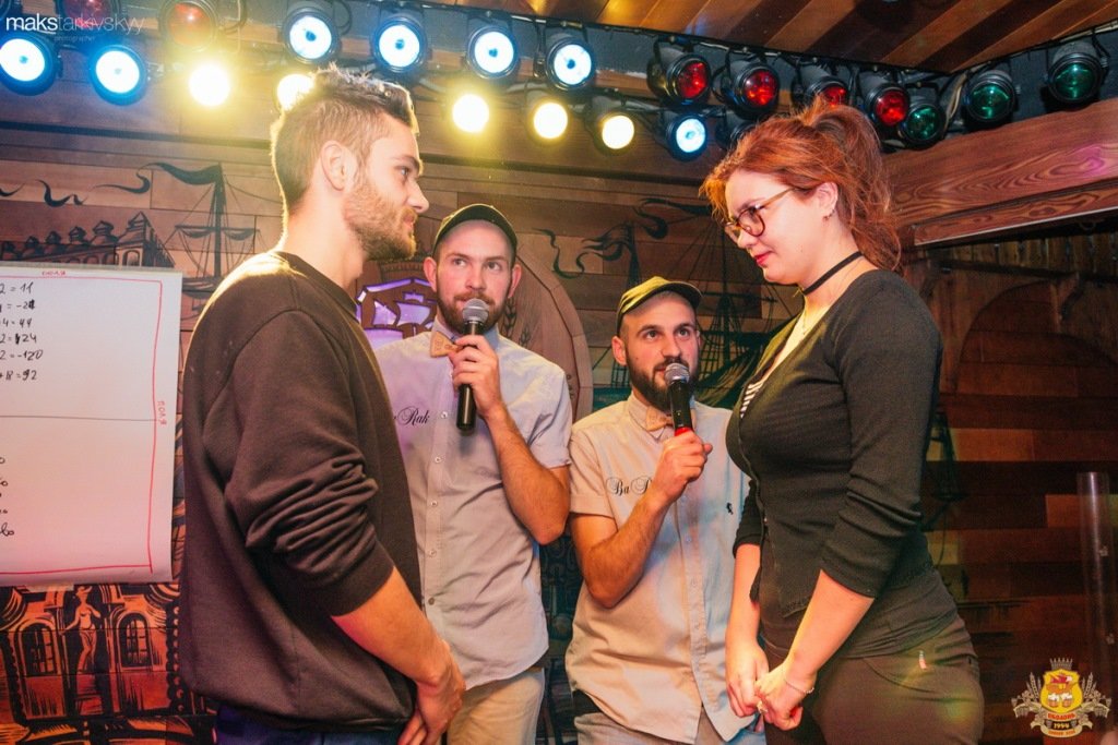 Круто, що Кораблик об’єднує в такі вечори студентів абсолютно різних закладів. Мало того, ще й дарує море подарунків за активності у розвагах. За що окремо дякуємо усім, хто вміє розважатись і не комплексує, та двом бешкетникам, які ті всі конкурси реалізовують – Алєжику Бакуну і Роману Полтараку.