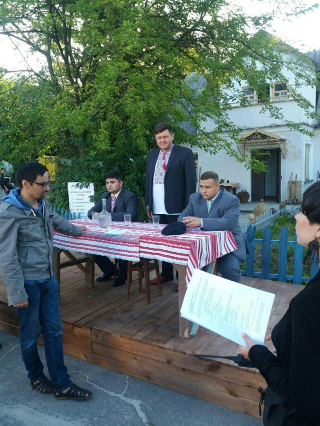 Серед селян, які приходять, щоб вирішити свої проблеми, особливо ініціативним є Серьога - ще один член командии Роман Копитко.