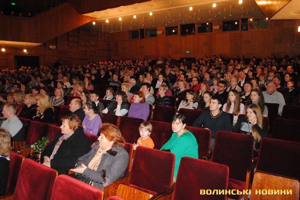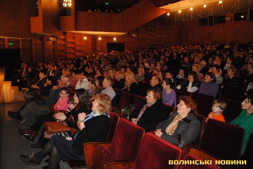 Повна зала жінок у стінах облмуздрамтеатру у Луцьку – таким видався святковий день 8 березня у Луцьку. 85% тих людей, які прийшли відсвяткувати Міжнародний жіночий день, виявилися панянками віком від 30 років.