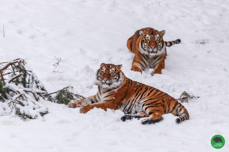 Прогулянку тигрів у зимовий сніжний день зазнімкував фотограф Олег Міткевич.
