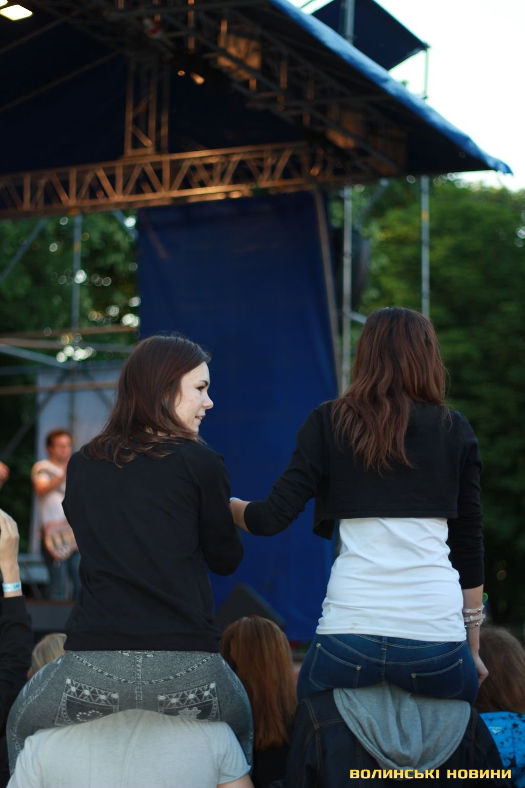 Нагадаємо, дійство мало відбутись 22 травня. Але тоді, в зв’язку з загибеллю волинських військових під Волновахою, захід перенесли. До слова, чи не кожен з гуртів згадав про те, що Україна переживає непрості часи, тому потрібно бути сильними та єдиними. А гурт «С.К.А.Й.» вшанував загиблих героїв флешмобом та піснею-присвятою.