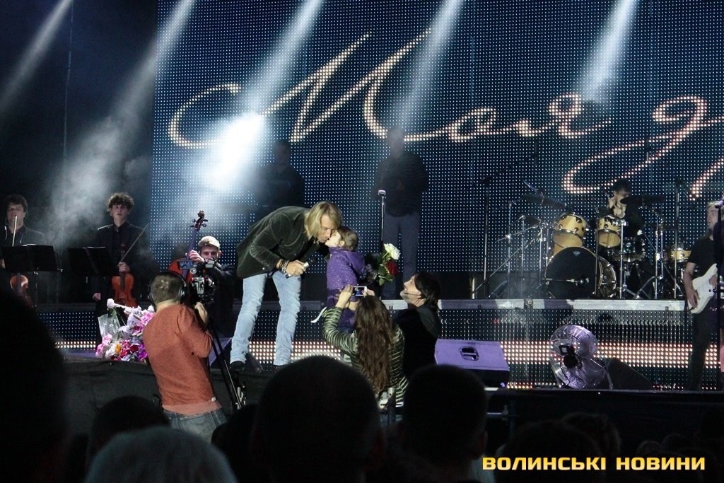 Артист дав у Луцьку відразу два концерти в один день і на обох зібрав аншлаг. Шанувальники просто засипали улюбленого музиканта подарунками, а він, своєю чергою, ділився з лучанами іменними футболками та листівками з автографами.