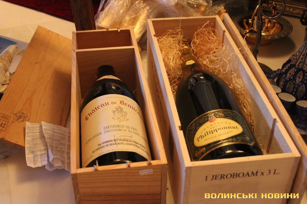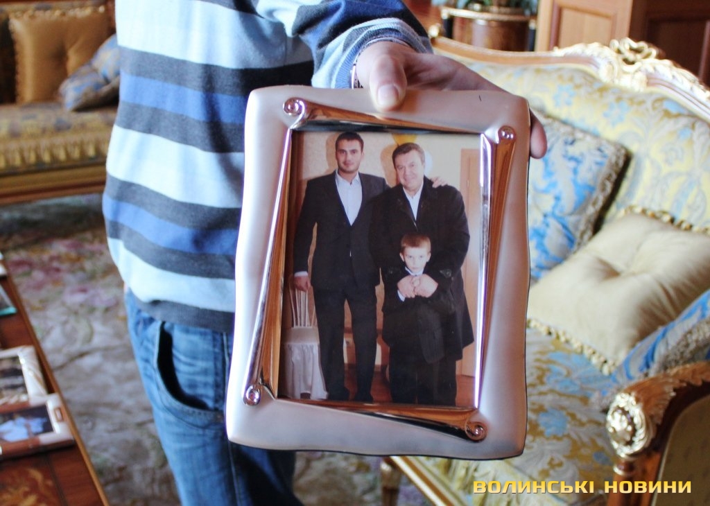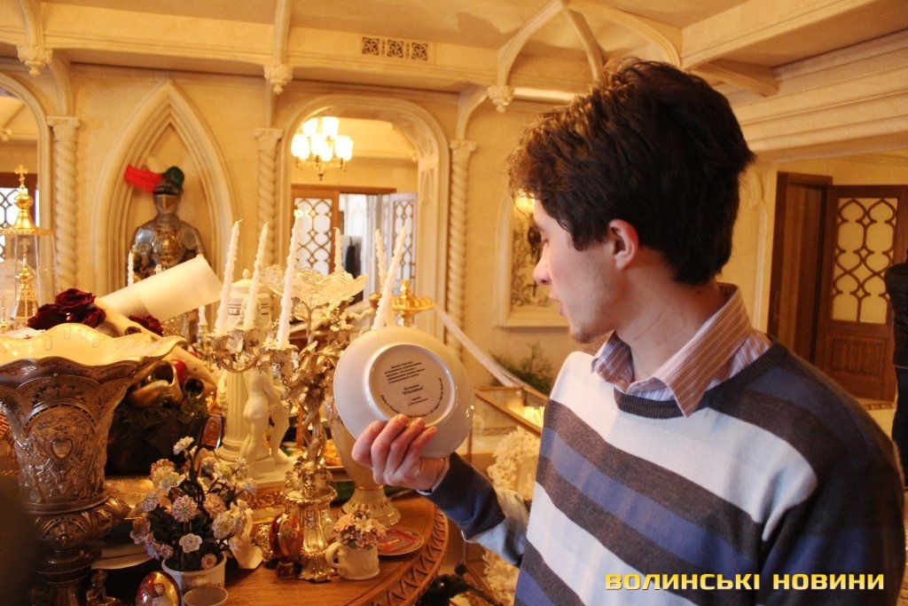 «Данная тарелка, выпущенная ограниченным тиражом, отпечатана с применением редких красок и натурального золота. Коллекция «Юбилейная». MadeinRussia»,- читає напис на одному з експонатів Олесь. Позолота та золоті предмети у Хонці – на кожному кроці, важко навіть уявити скільки кілограмів цього дорогоцінного металу використано для оздоблення маєтку екс-президента. Зі слів Олеся, Янукович, «мов циган, стягував додому звідусіль усе блискуче».