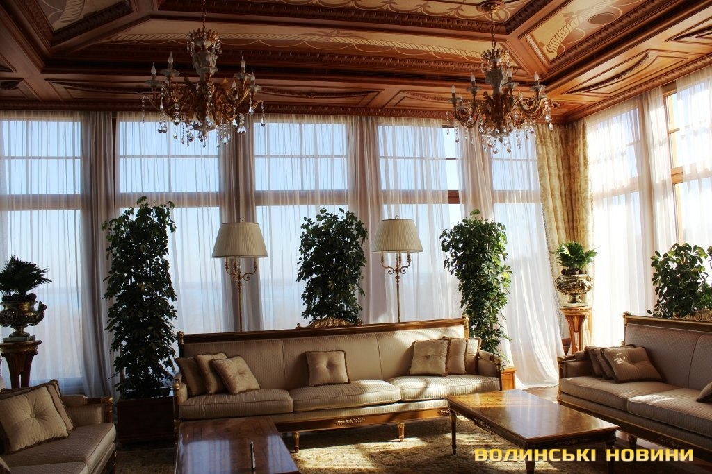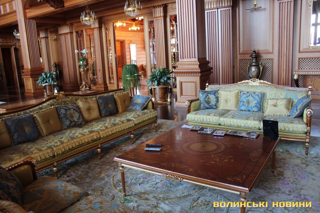 Позолочена сантехніка, велетенські телеекрани, антикваріат, окремі ліфти для господаря та прислуги, ексклюзивні роялі, опудало кота – у таких умовах донедавна мешкав колишній президент, а нині злочинець у міжнародному розшуку Віктор Янукович.