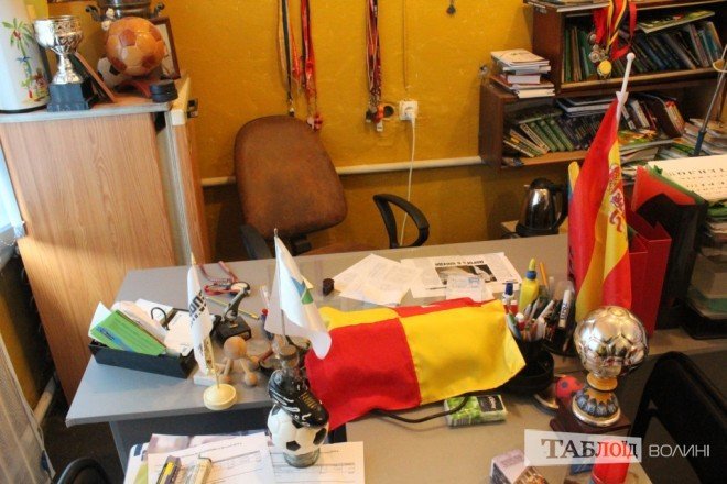 І дійсно, спортмайданчик – це другий дім Миколи Дендіберіна. Також кожен день він буває у своєму «спортивному» кабінеті, який знаходиться поряд у невеликому будинку, приміщенні колишньої котельні. На стінах висять вимпели та нагороди команди, яку тренує, та власні, адже Микола Євгенійович сам грав футбол та працював спортивним кореспондентом московської газети.