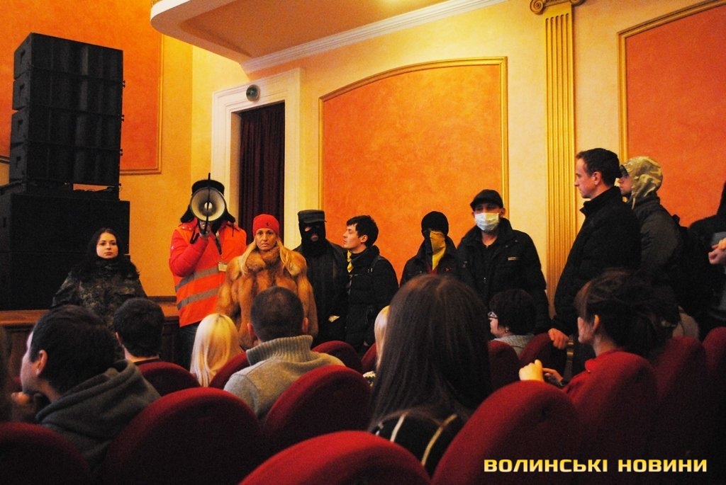 «На майдані вмирають зараз люди, а в вас тут концерт... Просимо усіх розійтись», - заявили активісти. Зала зреагувала досить емоційно: одні почали конфліктувати, інші спокійно покинули приміщення.