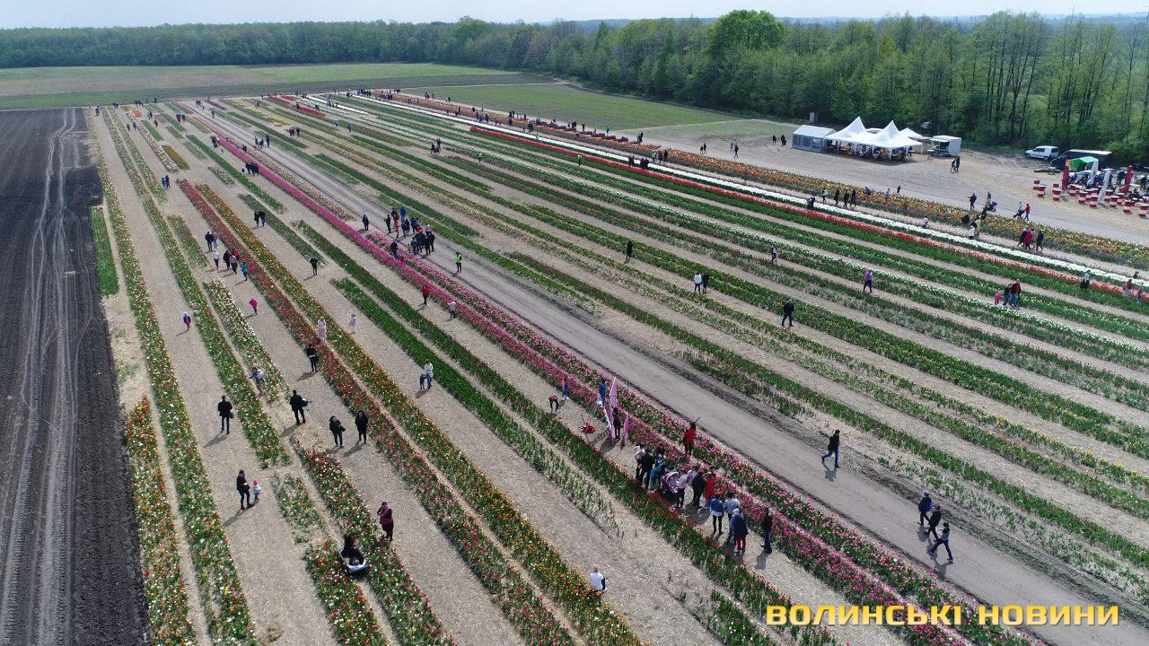 Тож, у той час, коли, певно, працівники квіткового господарства вже розпочали зрізувати тюльпани, пропонуємо своїм читачам поглянути на «Волинську Голландію» з повітря.