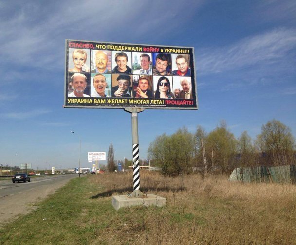Фото російських зірок розмістили на біллборді з підписом "Прощавайте!" У Києві на Новообухівській трасі з'явилися світлини зірок, які завзято підтримували від'єднання Криму від України насильницьким шляхом, - пише ТСН.