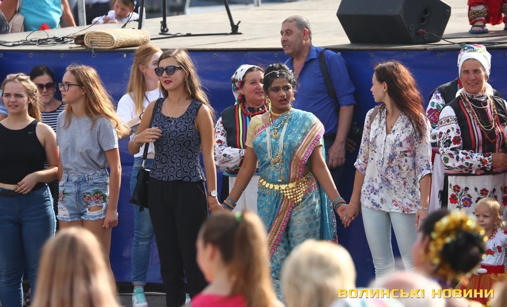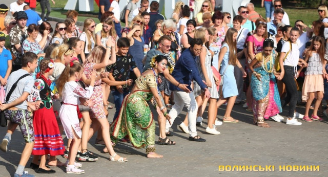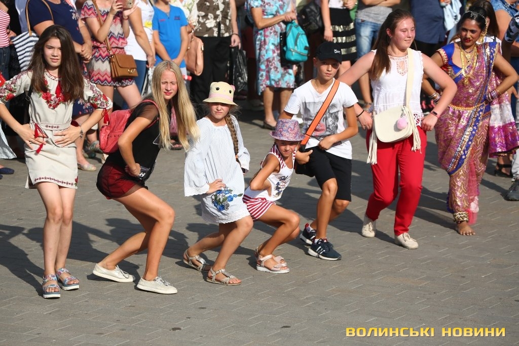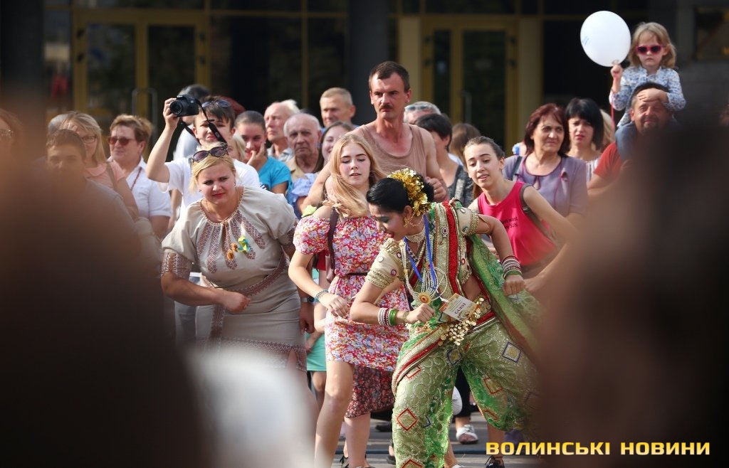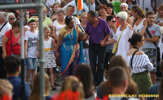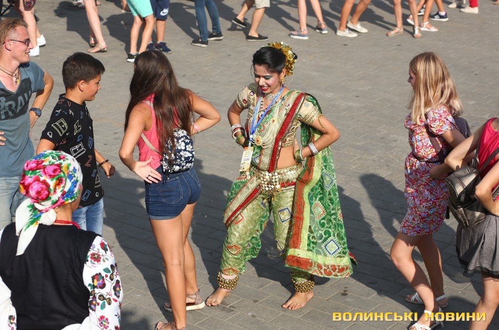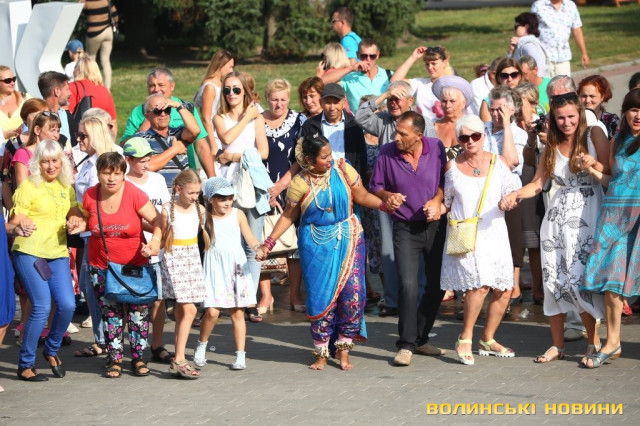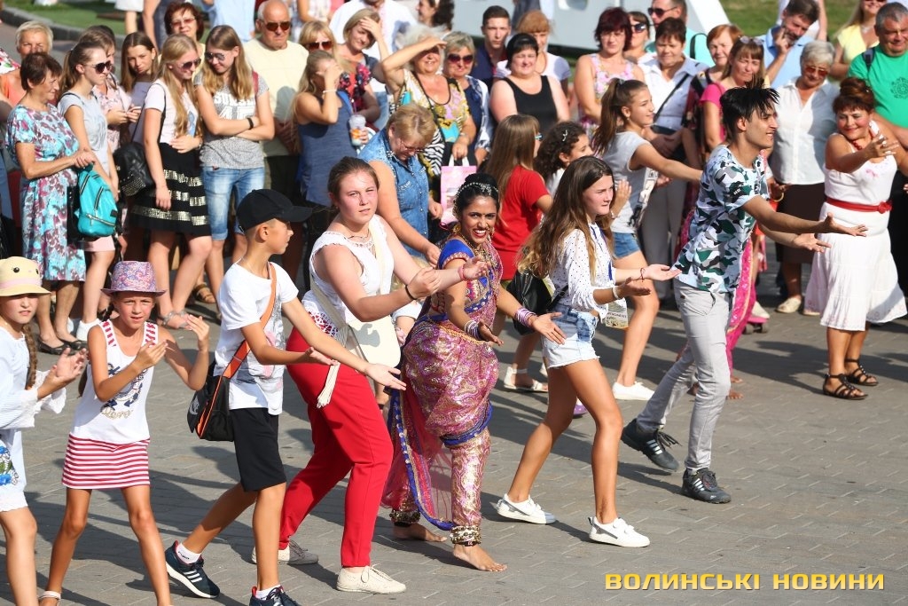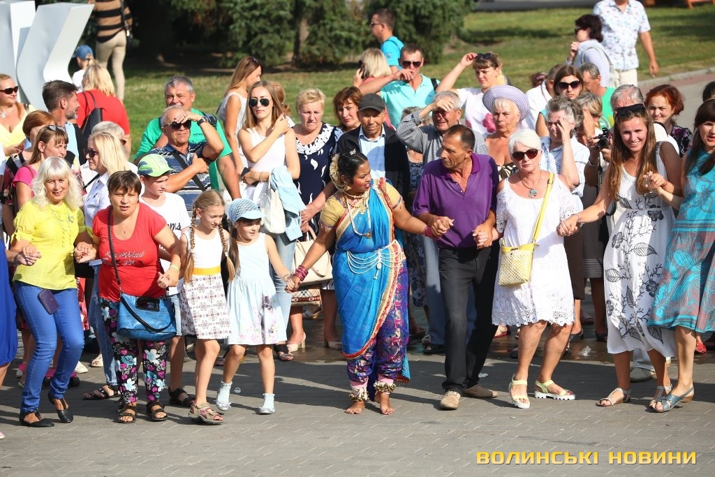 Насамкінець настав час для найбільш екзотичних танців з далекої Індії. Танцювальний колектив «Тейджомай» (Мумбай, Індія) влаштував майстер-клас з вивчення індійських танців, зібравши до кола десятки лучан різного віку. Опісля майстер-класів згадані мистецькі колективи виступили з концертом «Під прапором України».