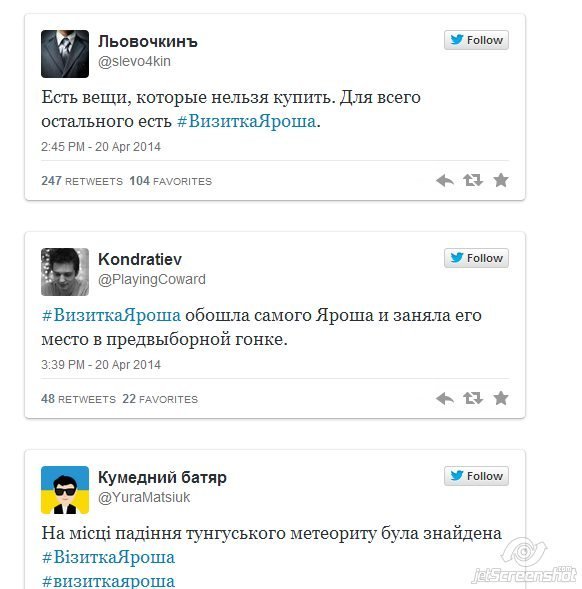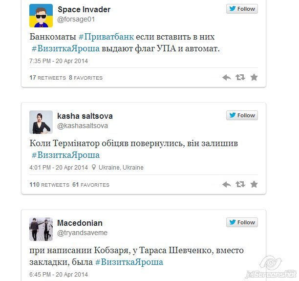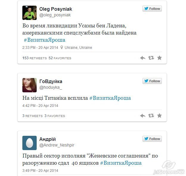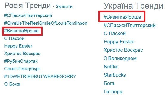 Користувачі інтернету миттєво підхопили цю комічну заяву російського відомства. «Візитка Яроша» одразу потрапила в топи українського та російського Твітера:
