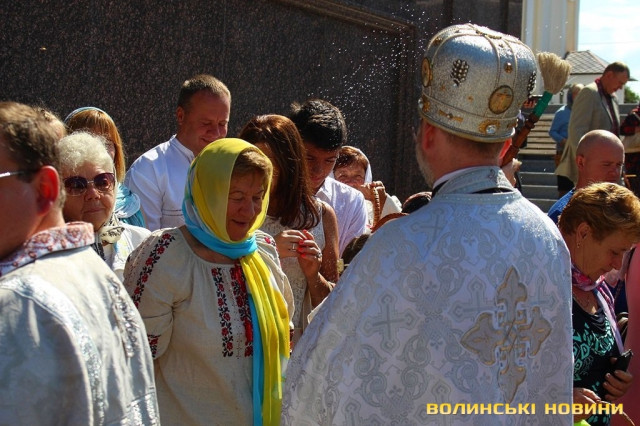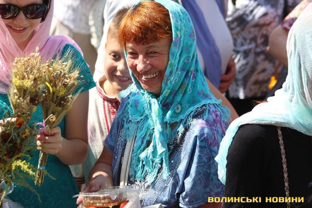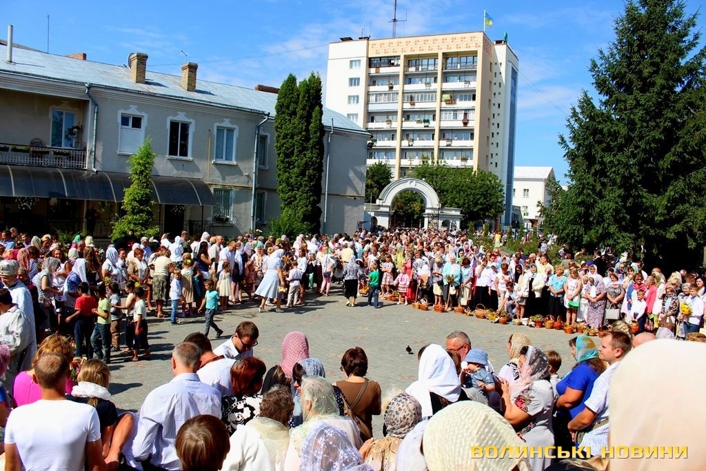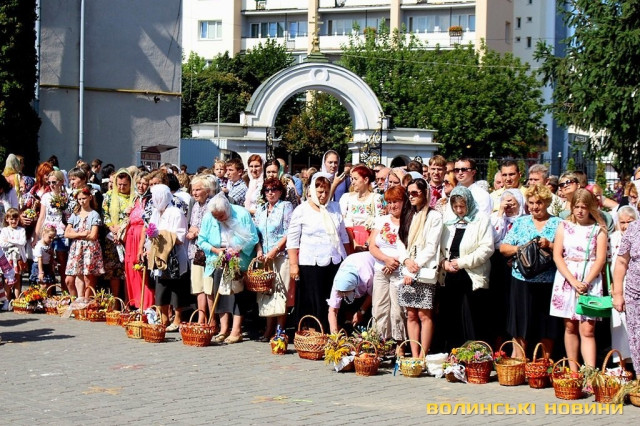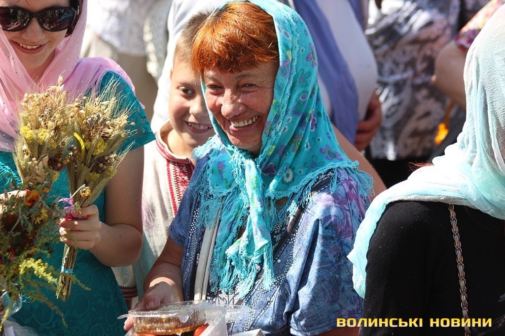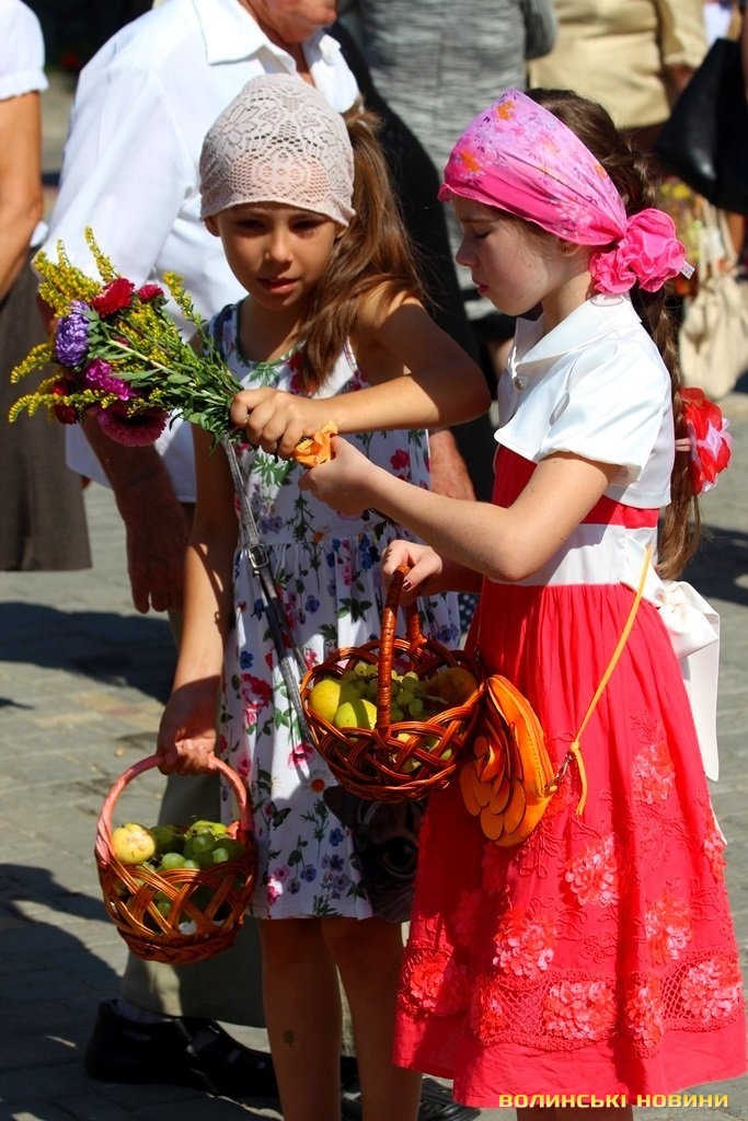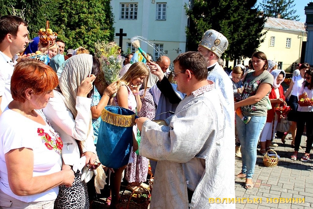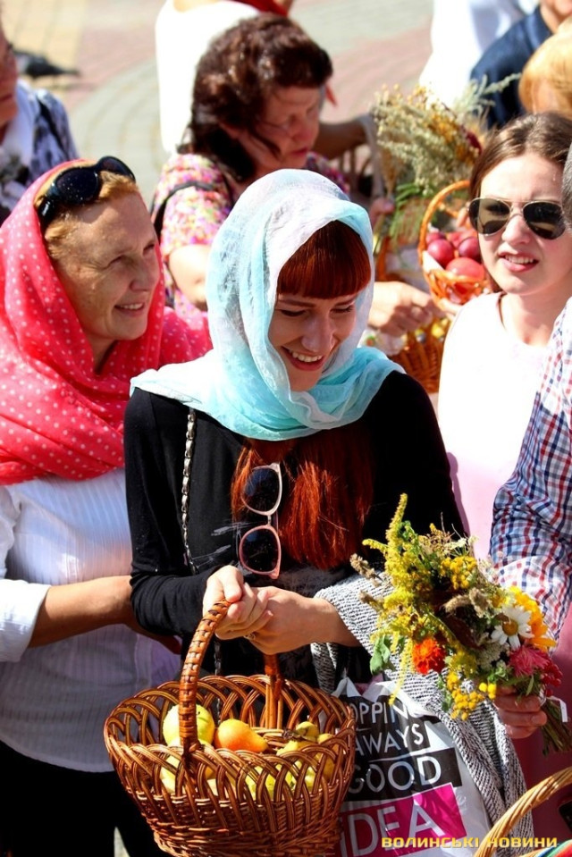 Однак, сучасні священнослужителі запевняють, що яблука можна освятити в будь-який час, адже є, до прикладу, й ранні сорти, що дозрівають значно раніше. Та й самі фрукти після освячення жодних цілющих властивостей не набувають, однак такий звичай вважають щирою подяка Господу за щедрий урожай.Тож, і сьогодні, 19 серпня, біля Луцького Свято-Троїцького кафедрального собору ніде було і «яблуку впасти».Саме через такий ажіотаж, а ще через те, що у багатьох лучан, на жаль, і в таке велике свято робочий день, духівники храму пообіцяли освячувати фрукти протягом усього дня.Після служби у церкві митрополит Луцький та Волинський Михаїл вийшов із храму до містян.Він благословив усіх охочих, а також щедро окропив дорослих та дітлахів свяченою водою.