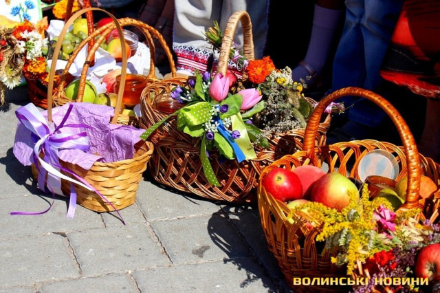 Яблучний Cпас у Луцьку: віряни освятили кошики з фруктами