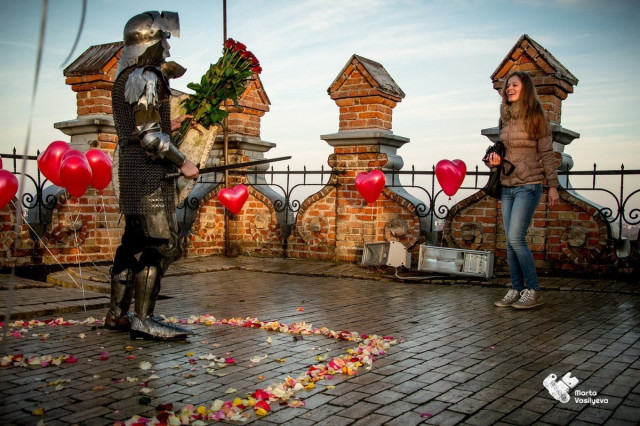 Так, справжній лицар освідчився своїй коханій у стінах Замку Любарта у Луцьку. Приємному здивуванню, каже дівчина, не було меж.