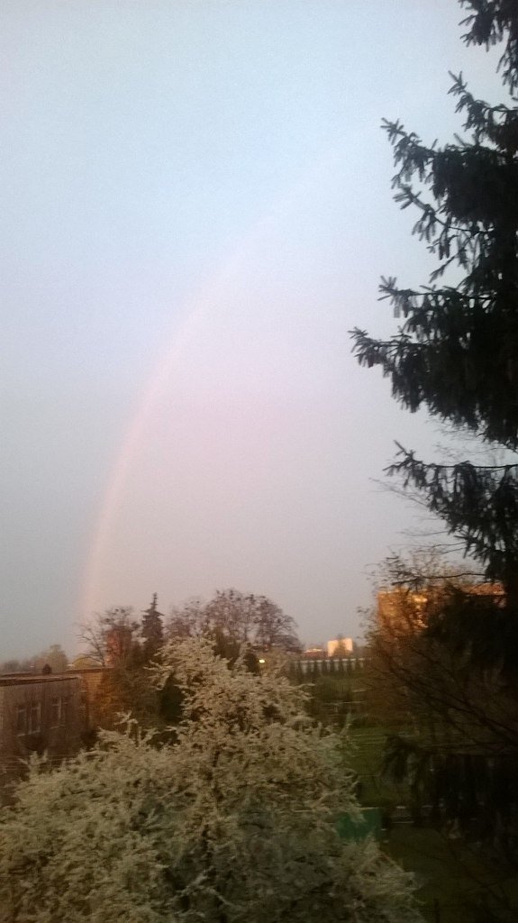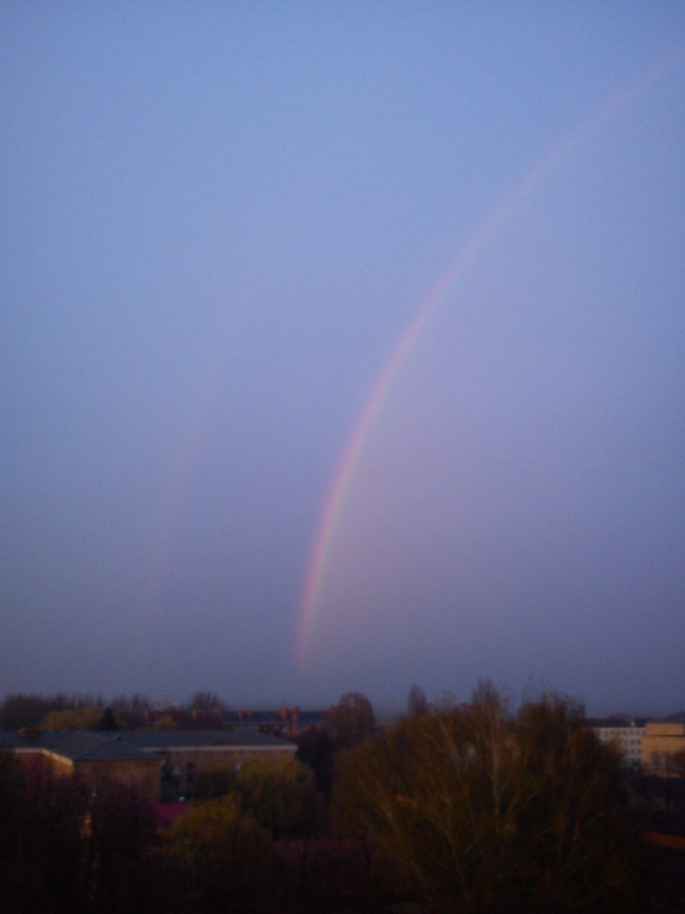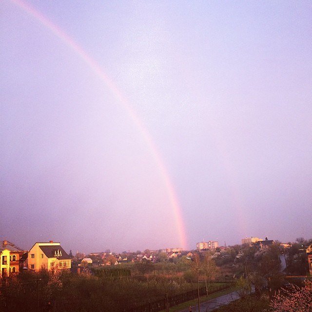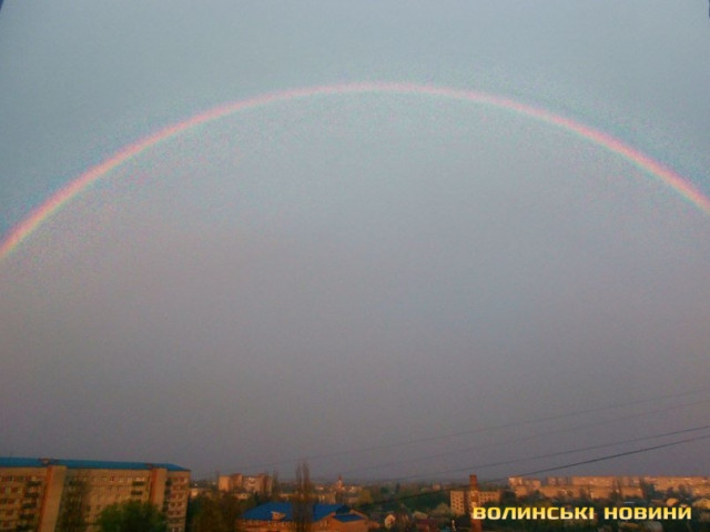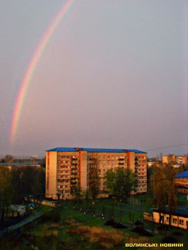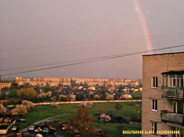 Дощ пройшов, і під останніми променями вечірнього сонця над Луцьком з'явилася райдуга.