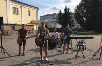 На Театральному майдані Луцька рок-гурт з сусіднього Рівного Never too late band радує перехожих каверами на відомі треки, а також авторськими піснями, аби назбирати на запис власного альбому