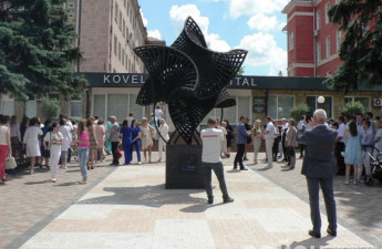 Біля парадного входу Ковельського медичного об’єднання представили абстрактну скульптуру за понад 500 тисяч гривень, яку автор назвав «Розвитком»