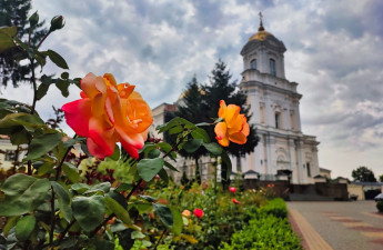Двір кафедрального собору Святої Трійці прикрашають квітучі троянди різних кольорів. Імпровізований розарій став справжньою прикрасою центральної частини Луцька та місцем релаксу. Частина квітів була привезена з Маріуполя, який нині під окупацією.