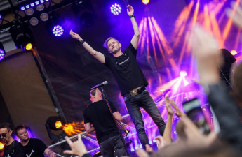 Собаки не стали довго розкачуватися, вжаривши «Троєщину». Вже на цьому треці Сергій Жадан побіг до натовпу фанатів, але зрозумівши, що за кілька хвилин його розберуть на сувеніри, повернувся на сцену.