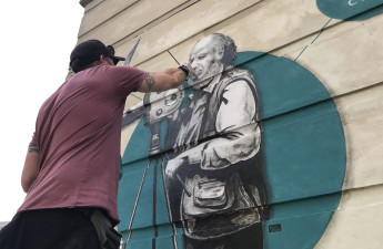 Луцький художник Юрій Чайка намалював мурал із відомим кінорежисером, оператором, колишнім керівником аматорської кіностудії «Волинь» Борисом Ревенком.