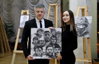 У Луцьку – виставка-продаж робіт, присвячених війні та воїнам «Азова». Фото