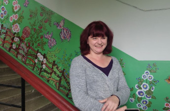 Лучанка Олена Лотоцька від початку повномасштабного вторгнення російських військ в Україну почала розмальовувати під’їзд багатоквартирного будинку, в якому живе. Уже розмалювала три поверхи.