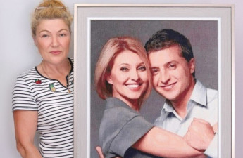 Українська майстриня вишила портрет Зеленських, який продасть заради ЗСУ