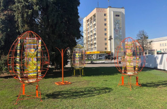 Центр Луцька почали прикрашати до Великодня. 22 квітня на Театральній площі встановили кілька величезних писанок