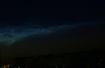У передсвітанковому небі Луцька вдалося зафіксувати рідкісне для України атмосферне видовище – сріблясті хмари. Це відносно молоде метеорологічне явище, природу якого вчені остаточно так і не дослідили. Прозоре хвилясте мереживо, схоже на хмари, що ніби підсвічуються блакитним неоном, утворюється у мезосфері за досить низьких температур