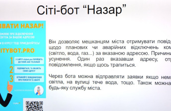 Вже найближчим часом в Луцьку розпочне роботу міський віртуальний бот «Назар», який інформуватиме лучан дізнаватимуться про відключення води, опалення, електропостачання тощо. Також завдяки ньому лучани зможуть залишити заявки чи скарги щодо комунальних проблем міста.