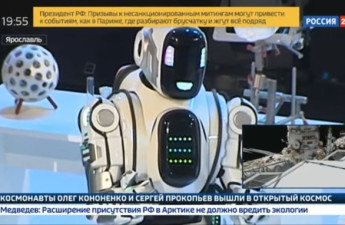 Пропагандистський канал «Росія 24» розповів про сучасного робота на путінському форумі. Російське чудо техніки виявилося звичайною людиною в костюмі робота