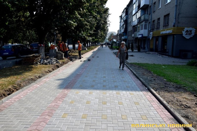 Тривають роботи по ремонту тротуарної частини на пр. Волі на ділянці від першої поліклініки до Київського майдану. І хоча капітальний ремонт проспекту Волі відбуватиметьс наступного року, частину пішохідної ділянки вирішили обладнати вже зараз для зручності лучан, адже дана територія потребувала невідкладної реконструкції.