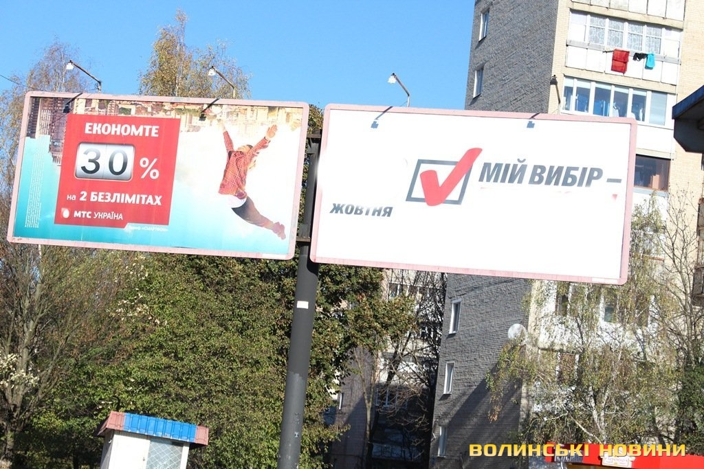 Білборди із зображеннями кандидатів та партій у обласному центрі замінили на інші полотна. Під виглядом соціальної реклами в Луцьку розміщена прихована агітація.
