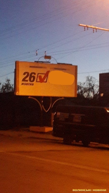 Так, на біл-бордах міста нерідко вказані знайомі з передвиборчої кампанії партійні гасла. Або ж є зображення із номером партії у списку, який збігається з датою виборів.