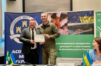 Вручив нагороду Віталій Кличко, голова Асоціації міст України.