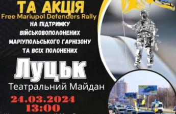 24 березня в Луцьку за сприяння міської ради відбудеться автопробіг на підтримку військовополонених Маріупольського гарнізону та всіх полонених Free Mariupol Defenders Rally. Шикування колони – о 12:30 на Театральному майдані, заїзд від Ощадбанку.