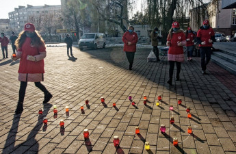 «Стрічка надії» з лампадок: у Луцьку студенти провели громадську акцію. Фото