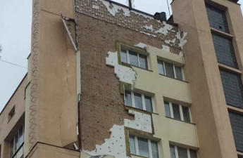Через вітер обвалився фасад будинку з годинником у центрі Луцька