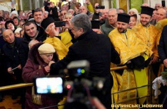 У соцмережі обговорюють фотографію журналіста Інформаційного агентства Волинські Новини, на якій Петру Порошенку в луцькому соборі цілують руку, як свого часу Віктору Януковичу