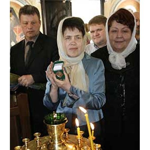 На Донеччині дружину президента України Людмилу Янукович нагородили орденом великомучениці Катерини - у такий спосіб храм святих рівноапостольних Кирила і Мефодія у Макіївці відзначив престольне свято.