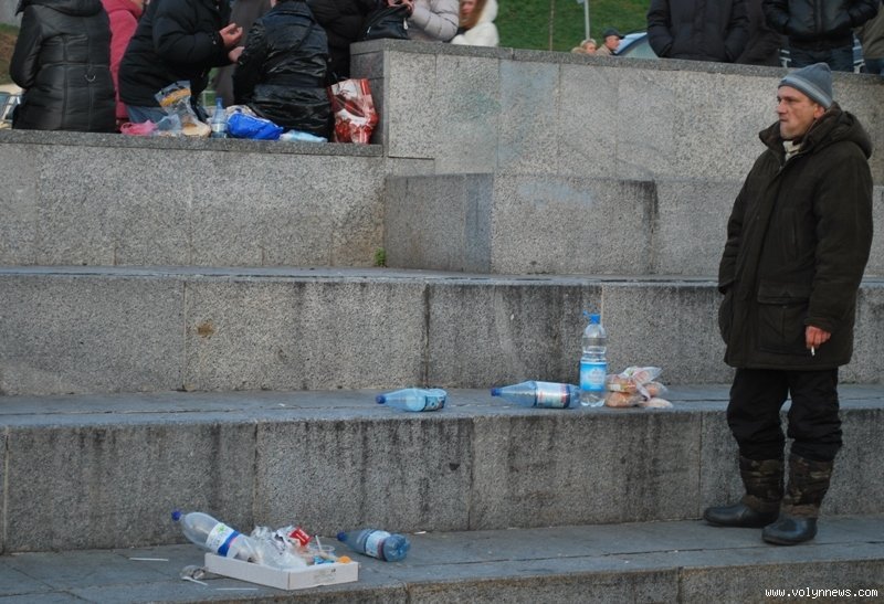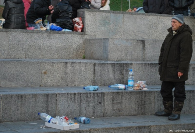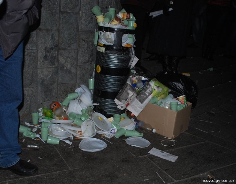 Щоправда, після перекусів та перекурів на Майдані залишаються купки сміття. Увесь непотріб не поміщається у смітники, а прибиральники не справляються.