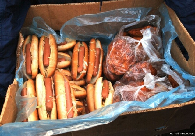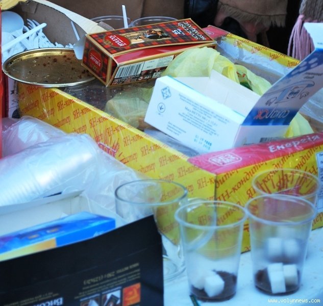 Ті ж, які приїхали на страйк на день - їжу переважно приносять з собою. Замість столів – підвищення біля торгового центру Глобус, у меню – бутерброди, овочі, хліб та сало. Гарячі напої - у термосах.