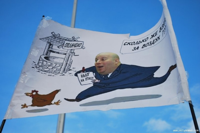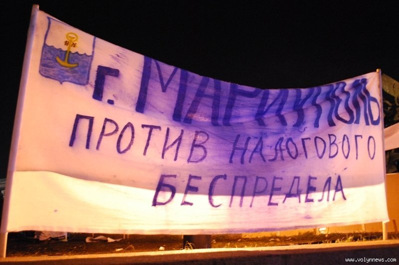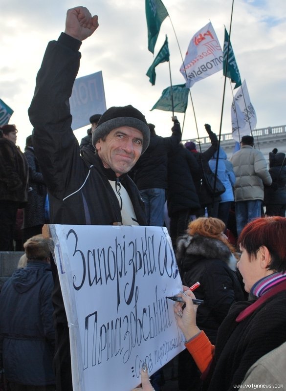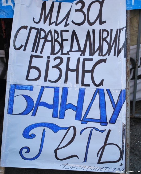 Ще один конфуз стався з пікетувальниками з Новомосковська. Вони повісили плакат з назвою міста ззаду-наперед.