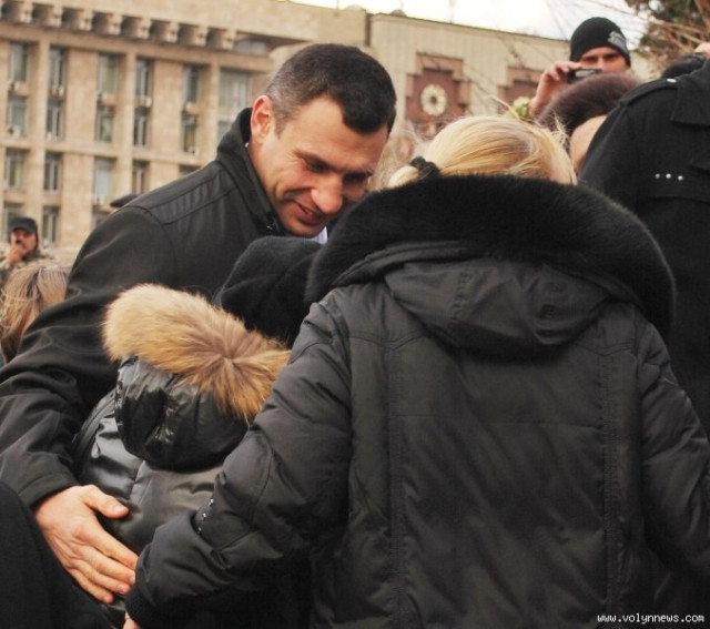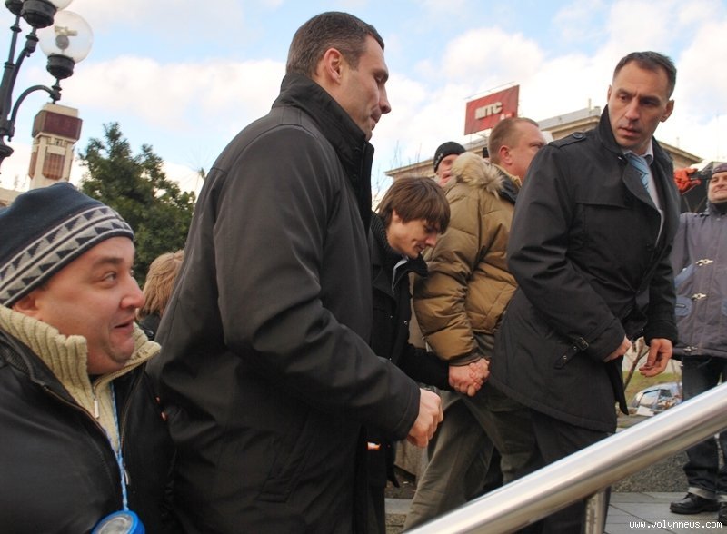 Лідеру партії «УДАР» і чемпіону-боксеру Віталію Кличку, що прийшов на Майдан, ледве вдалося звідти вийти - його оточила юрба прихильників і почала фотографувати.