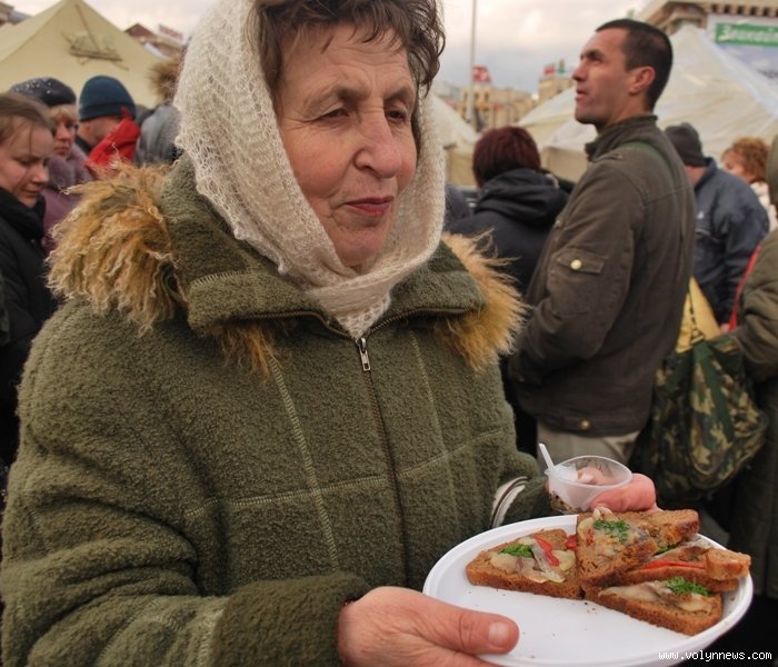 Роздають харчі безкоштовно не запитуючи звідки людина і чого прийшла на Майдан.