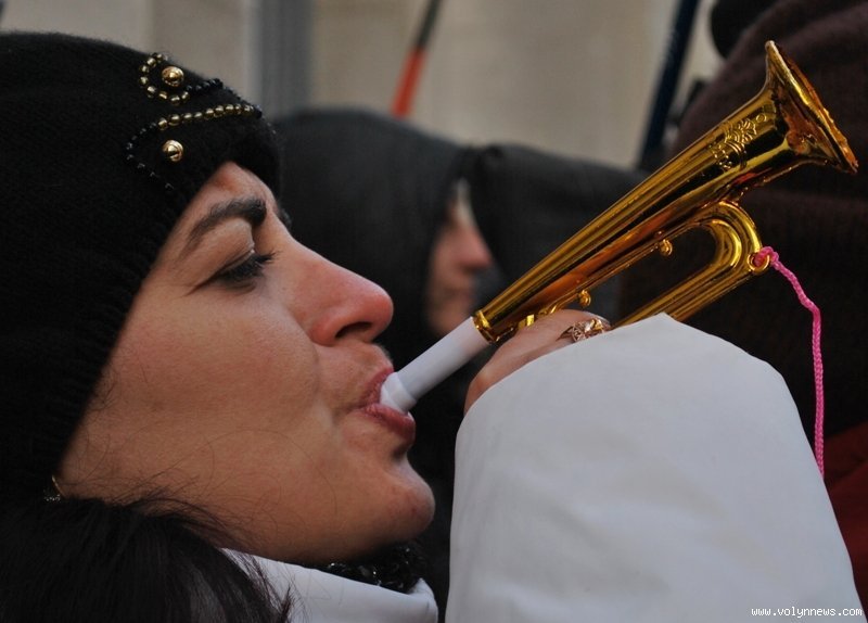 Як у центрі, так і біля Адміністрації вони били ступами у металеві відра, свистіли, гуділи, скандували гасла на кшталт «геть уряд та владу», кричали в рупори.