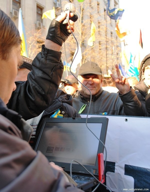 Окрім десятків теле, фото та інших журналістів, інформують про себе і самі пікетувальники - ведуть он-лайн трансляцію подій в інтернет за допомогою звичайної веб-камери та портативного модему.