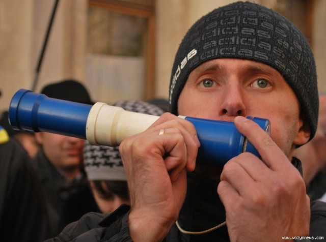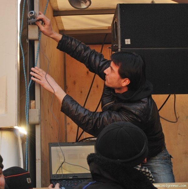 Щоправда земляк-волинянин чомусь уникав публічності, натягнувши капюшон і кепку, і не дуже зрадів об"єктиву "ВН". Каже, що на сцені виступати не може - немає потрібної технічної апаратури.